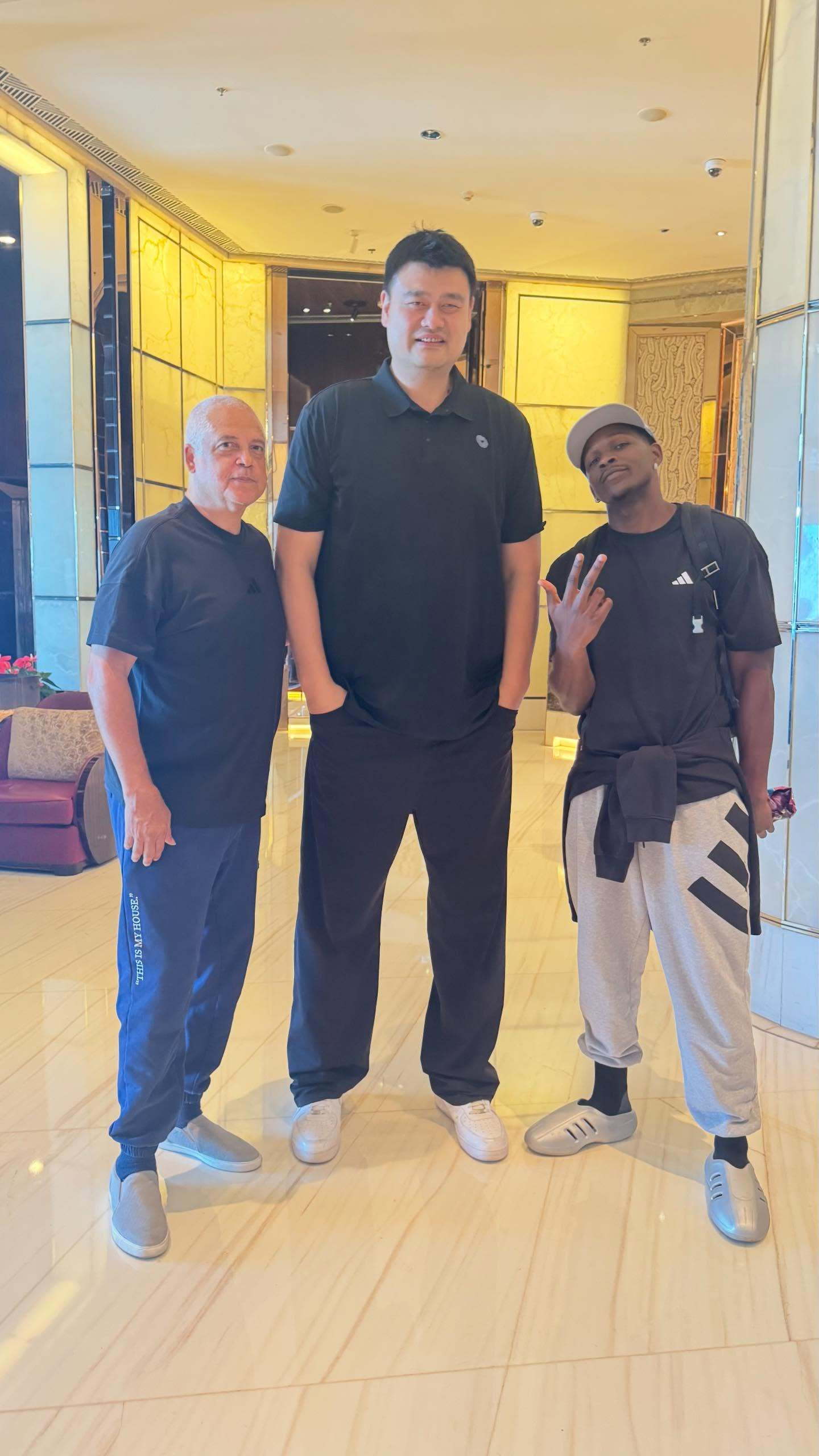 爱德华兹社媒晒出与姚明合影:我会在他头上暴扣,致敬传奇